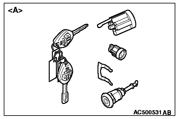 - When the door lock key cylinder is replaced by key set of illustration [A], register the encrypted code with the bar code on the ignition key in the key set. Refer to Chassis Electrical, Encrypted Code Registration Criteria Table.
