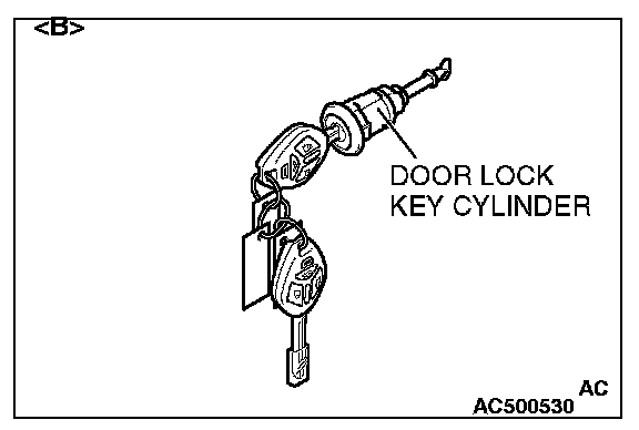 - When replacing by the door lock key cylinder of illustration [B], do not register the encrypted code with the bar code on the ignition key supplied simultaneously.