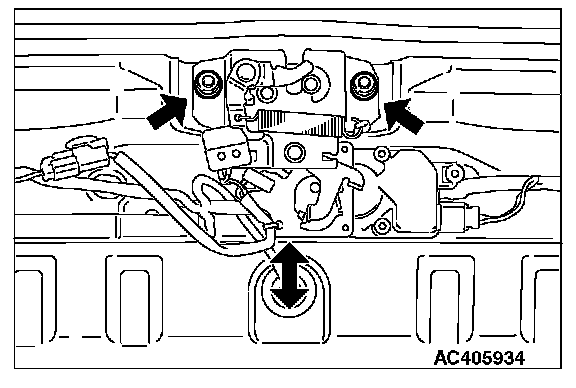 After checking the liftgate release cable for proper routing, loosen the liftgate latch mounting bolts. Change the position of the liftgate latch relative to the liftgate striker so that liftgate locking and unlocking effort is correct.