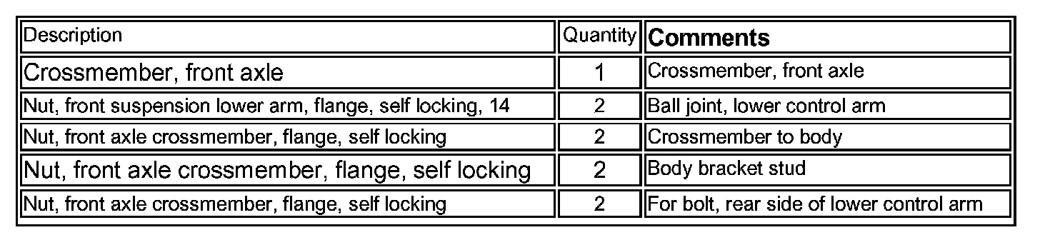 It is not necessary to order parts for this recall. Arrangements will be made to ship the appropriate recall kit to the dealers where inspection has determined that a replacement crossmember is required.