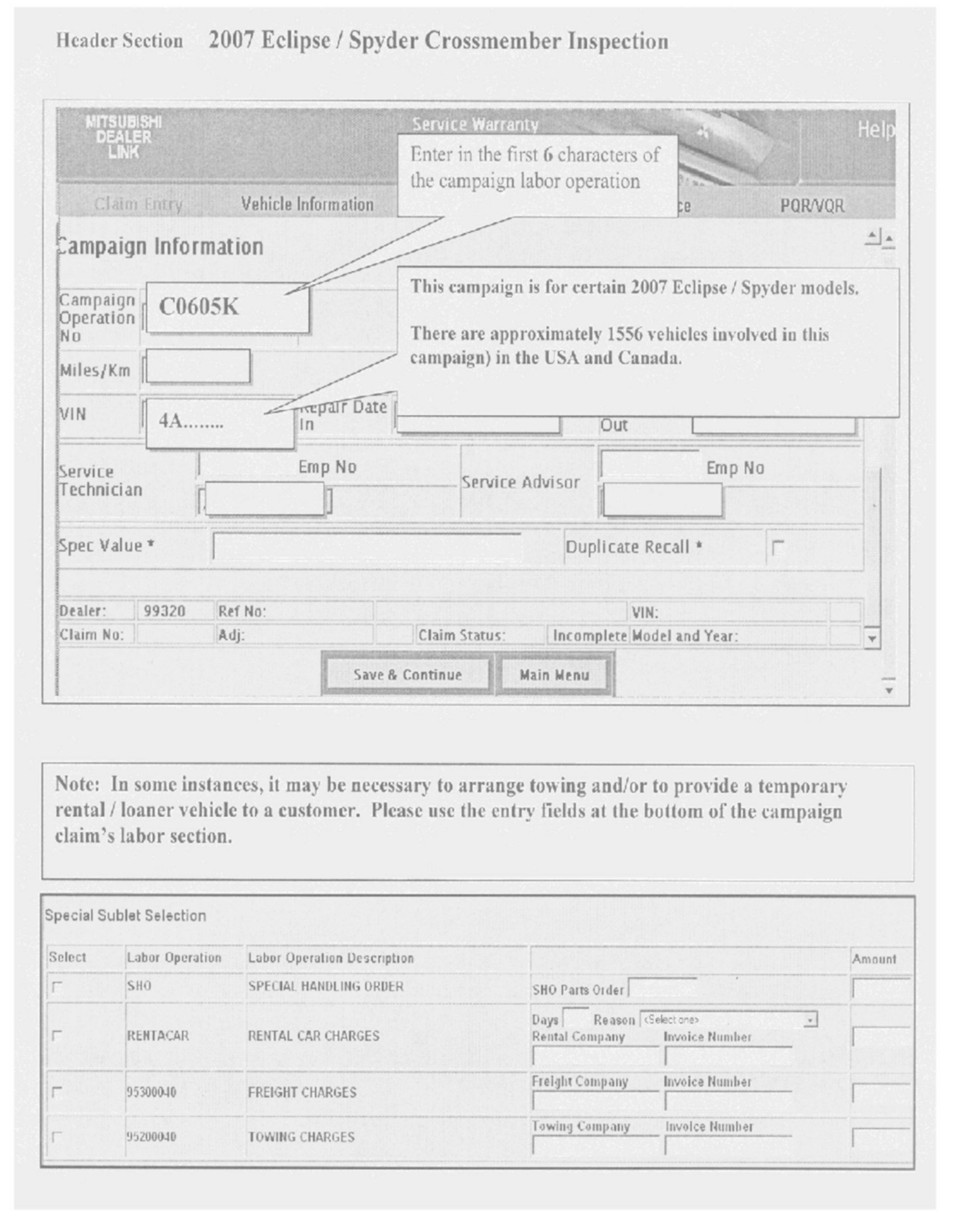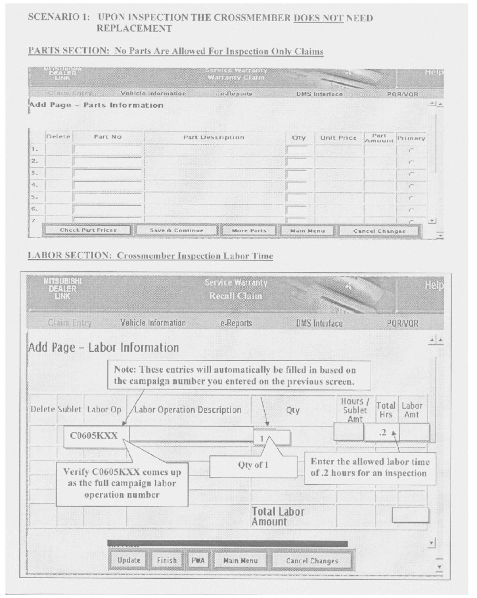 A letter will be sent to all owners of affected vehicles telling them to bring their vehicle to their Mitsubishi Motors dealer to have the crossmember inspected and replaced if needed. A copy of the customer notification letter appears later in this bulletin.