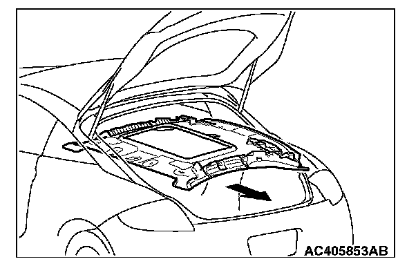 Turn the headlining assembly 90° as shown and remove it from the liftgate side.