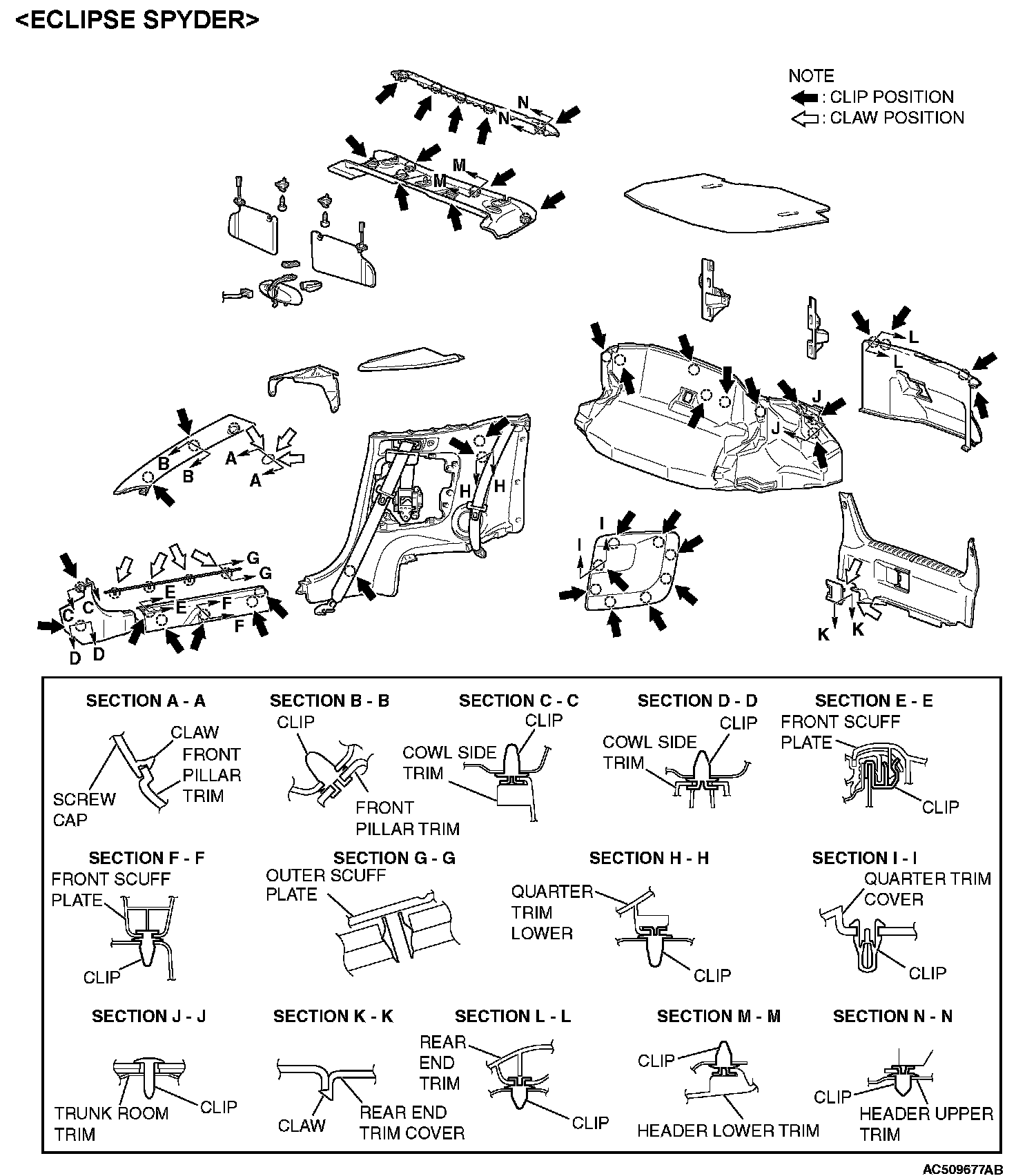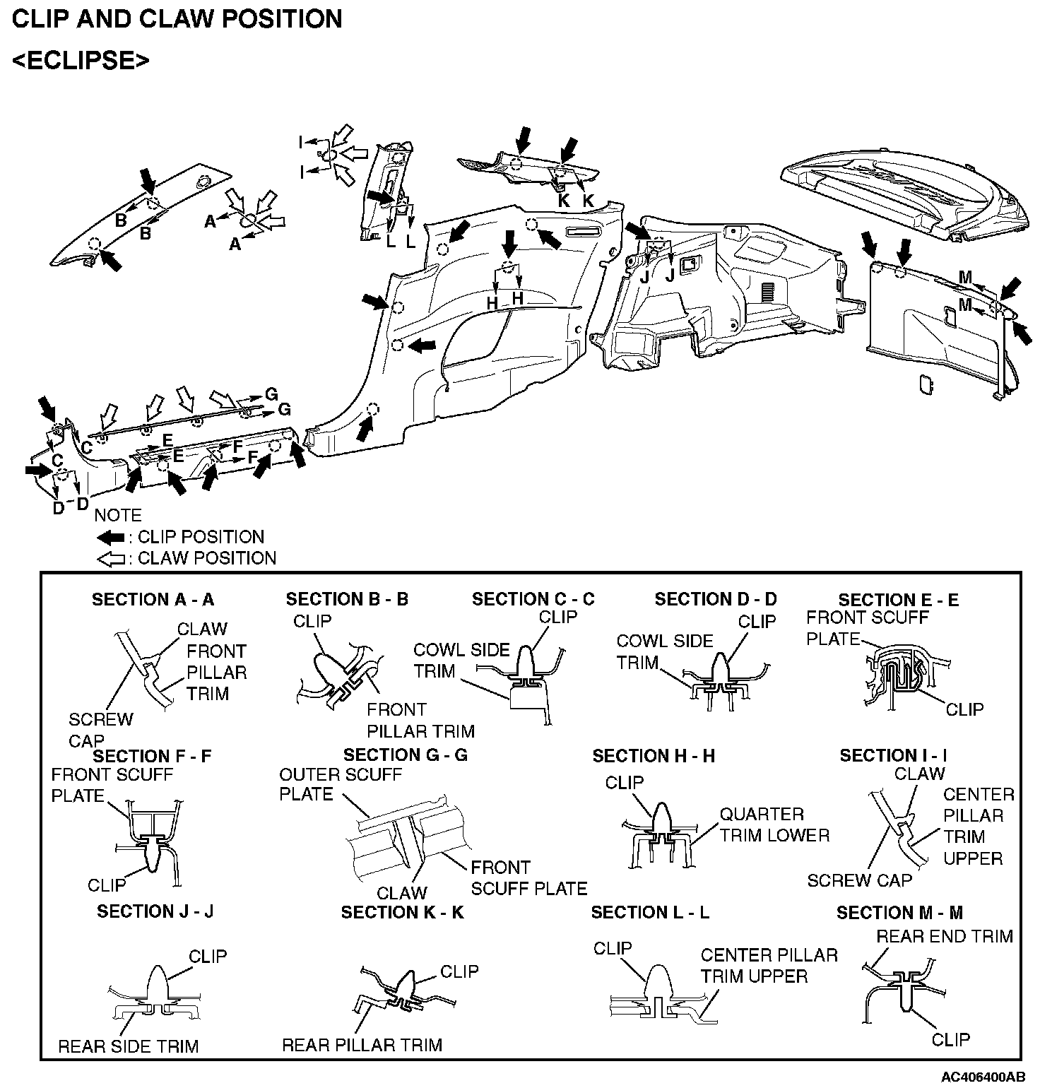 Release the clip and remove the front pillar trim by pulling it to the direction shown.