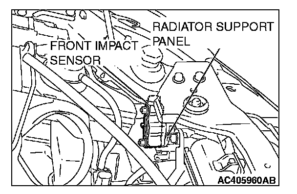 3. Check the front impact sensor wiring harness for binding, check the connector for damage, and check the terminals for deformation.