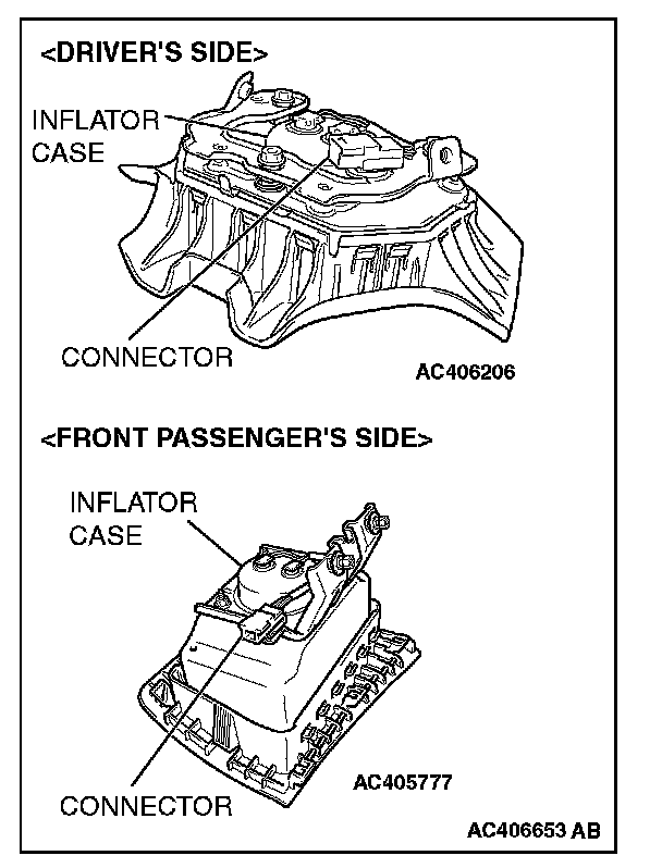 3. Check the air bag inflator case for dents, cracks or deformities.
