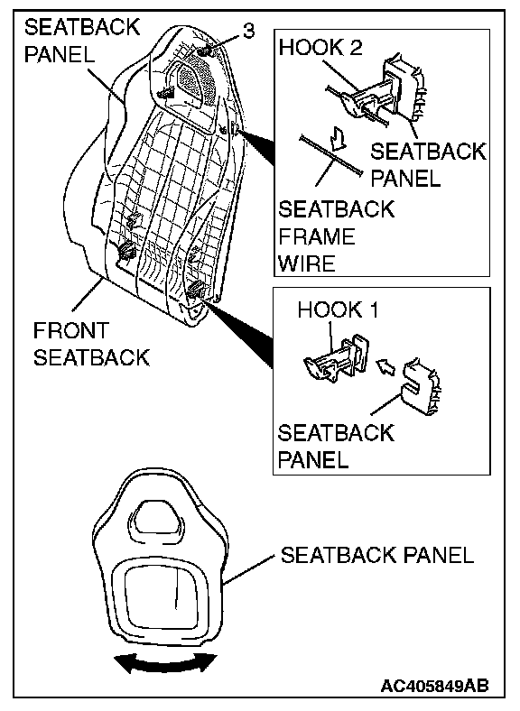 2. If the seatback panel cannot be removed by the steps above, remove it as follows.