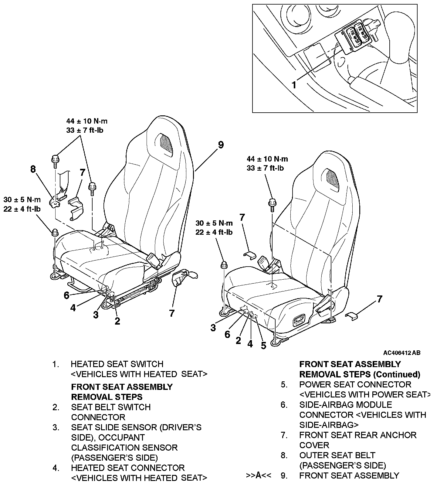 FRONT SEAT ASSEMBLYREMOVAL AND INSTALLATION