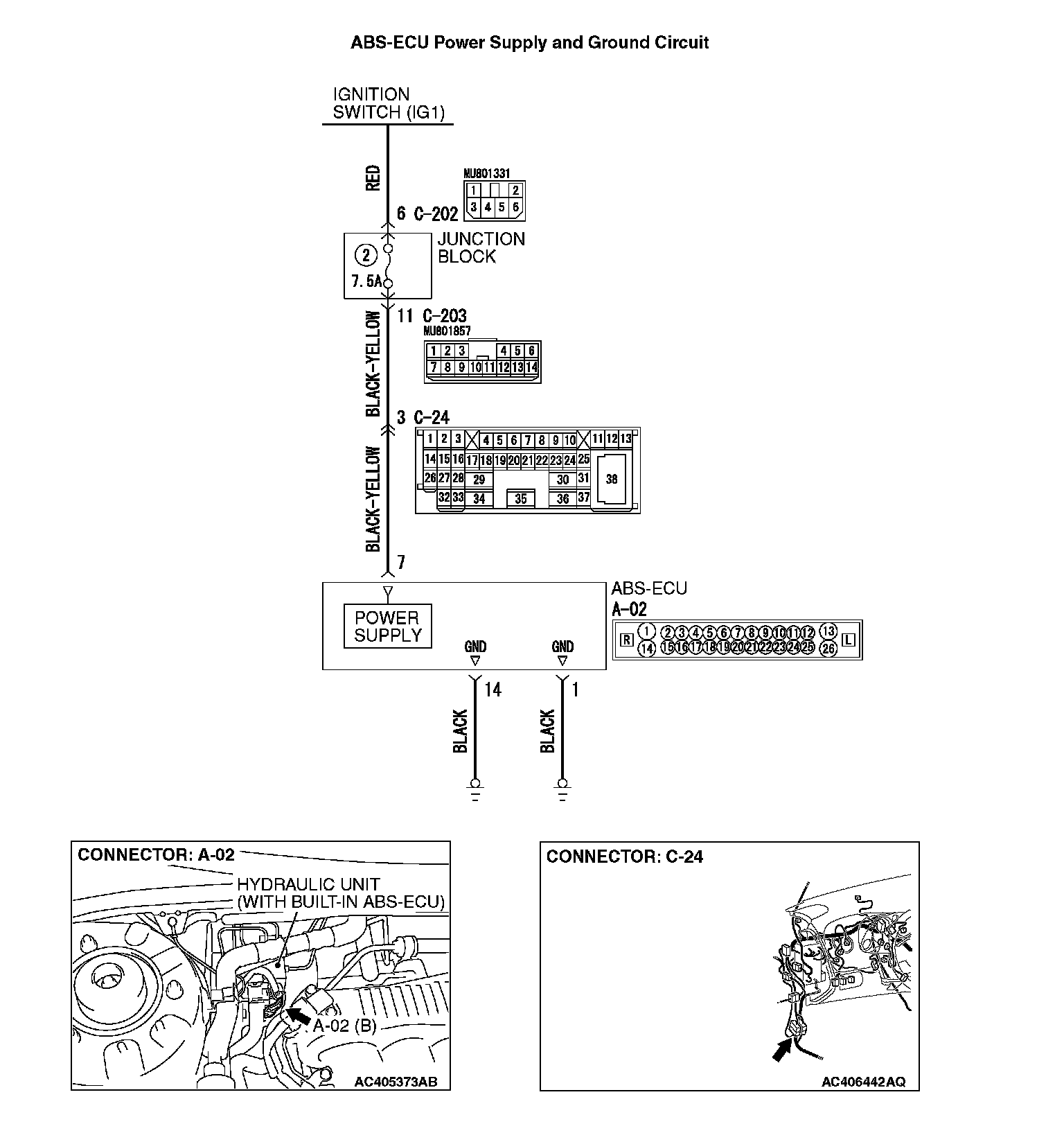 INSPECTION PROCEDURE 2: ABS-ECU Power Supply Circuit SystemABS-ECU Power Supply And Ground Circuit Connector: A-02, C-24: