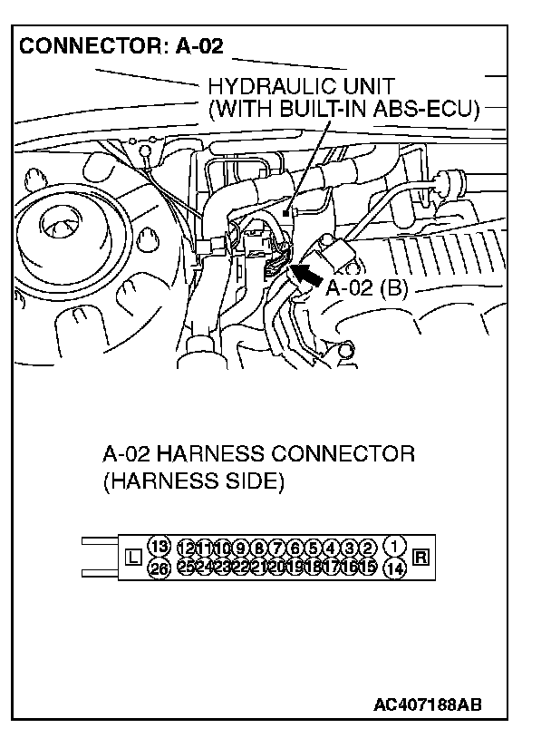 ^ ABS-ECU connector A-02