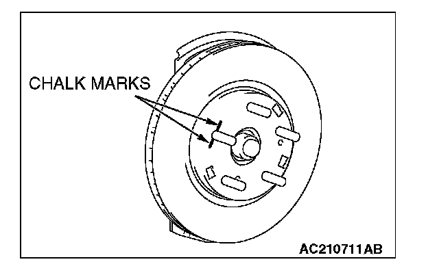 (1) Chalk phase marks on the wheel stud and the brake disc as shown.