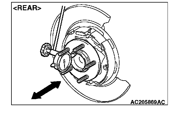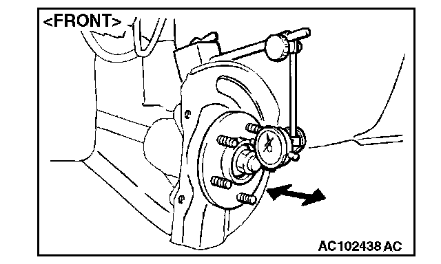 (2) Remove the brake disc. Then place a dial gauge as shown, and measure the end play while moving the hub in the axial direction.