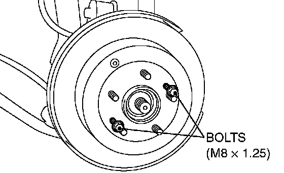 If the rear brake disc is seized, install M8 x 1.25 bolts as shown, and remove the rear brake disc by tightening the bolts evenly and gradually.