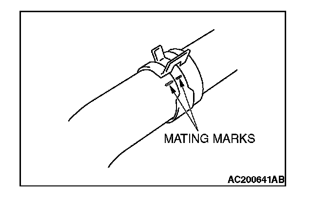 Make mating marks on the radiator hose and the hose clamp. Disconnect the radiator hose.