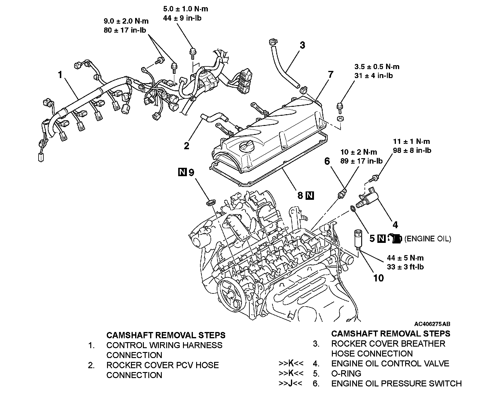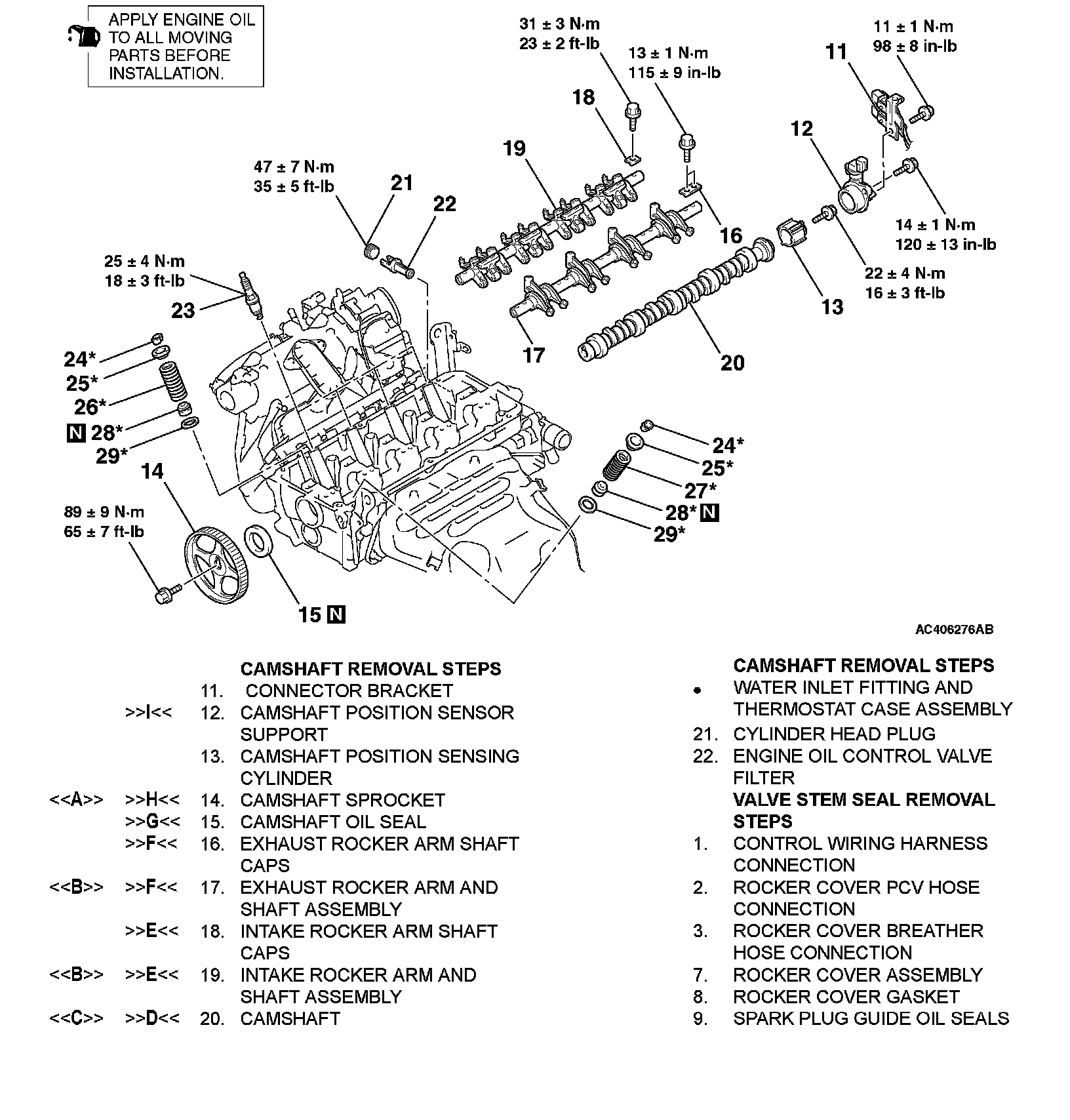 CAMSHAFT AND VALVE STEM SEALREMOVAL AND INSTALLATION