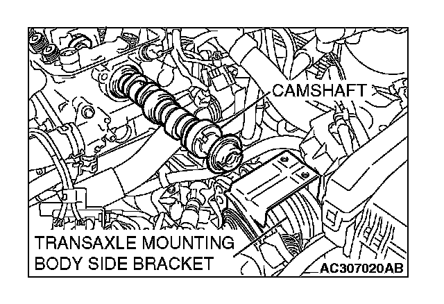 1. Raise the transaxle assembly until the camshaft and transaxle mounting body side bracket do not touch it.