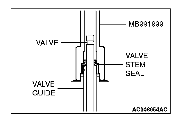 2. Use special tool MB991999 to fill a new valve stem seal in the valve guide using the valve stem area as a guide.