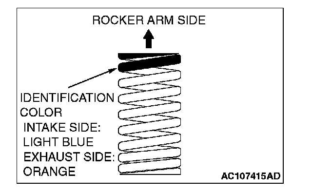 Install the valve springs with the identification color painted end facing the rocker arm.