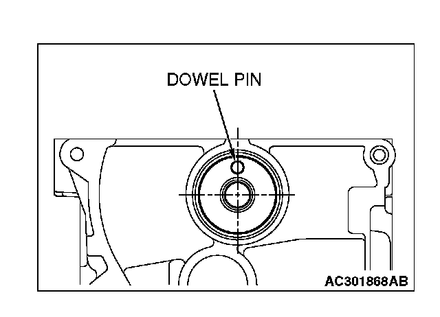 Set the dowel pin of the camshaft in the position shown in the figure.