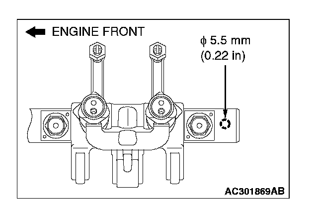 1. Place the intake rocker shaft so that its 5.5 mm (0.22 inch) hole faces toward the cylinder head.