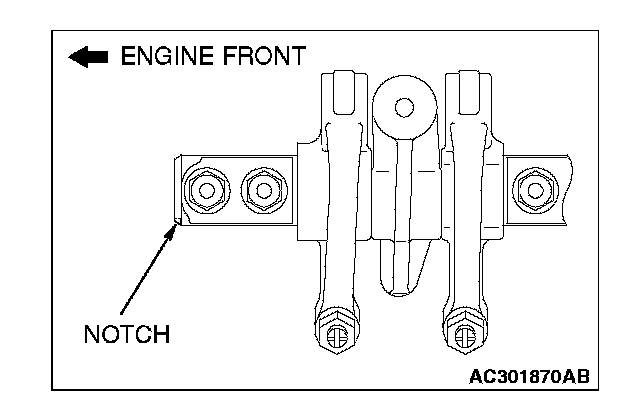 1. Install the exhaust rocker shaft so that its notch is positioned as shown.