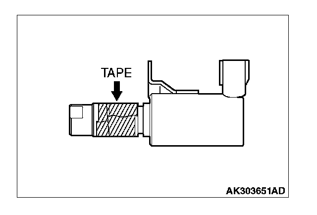 ^ Before installing O-ring, wind sealing tape around the oil passages cut-out area of engine oil control valve, to prevent damage. If the O-ring is damaged, it can cause an oil leak.