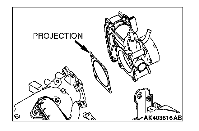 Install a new gasket so that the projection is positioned as shown in the illustration.