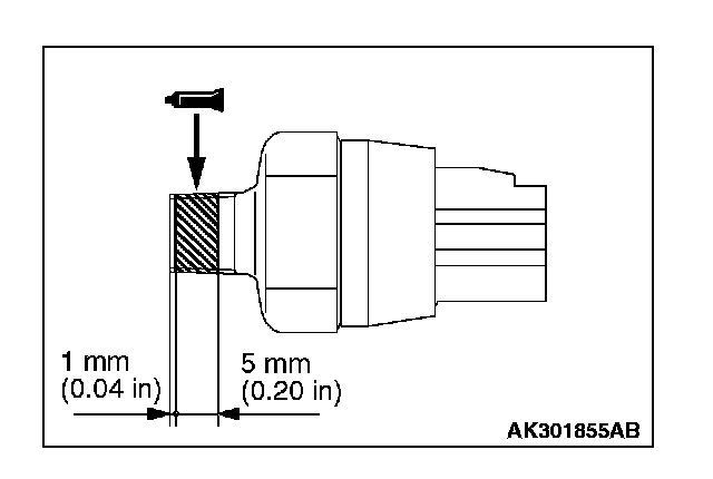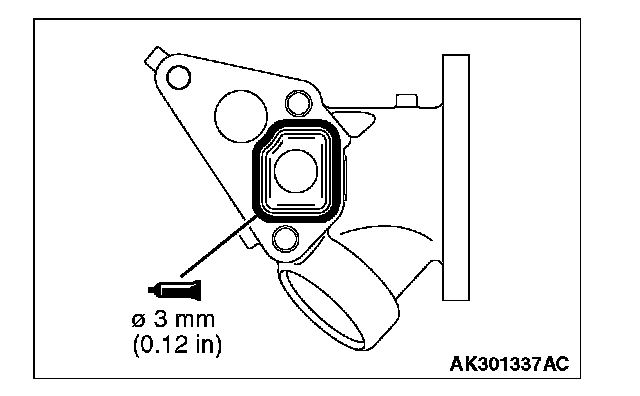 1. Apply a 3 mm (0.12 inch) diameter bead of sealant (MITSUBISHI Genuine Part number MD970389 or equivalent) to the groove as shown in the illustration.