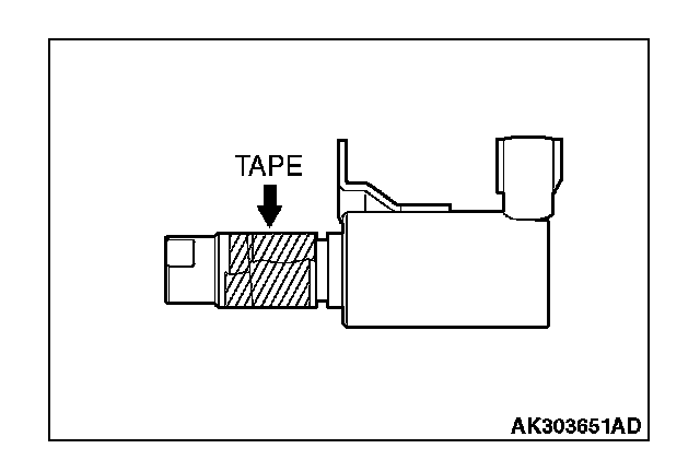 ^ Before installing O-ring, wind sealing tape around the oil passages cut-out area of engine oil control valve, to prevent damage. If the O-ring is damaged, it can cause an oil leak.