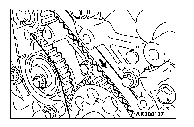 2. Loosen the tensioner "B" bolt, and then remove the timing belt "B."