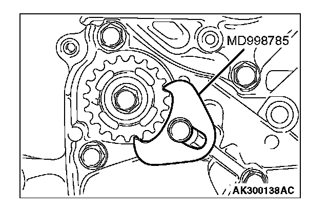 1. Set special tool MD998785 as shown to prevent the counterbalance shaft sprocket from turning together.