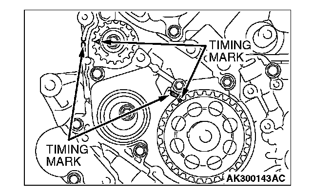 5. Check that timing marks on the sprockets are aligned with the timing marks on the front case.