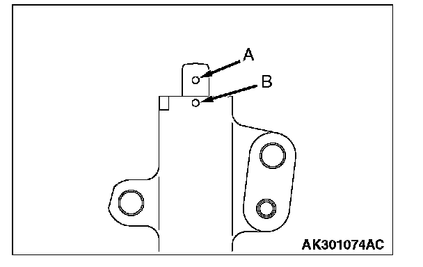 6. With your index finger, press the center of timing belt "B" at the tension side as shown. The bolt must deflect 5 to 7 mm (0.20 to 0.28 inch).