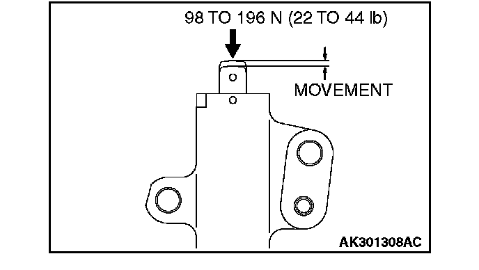 4. Press the rod with a force of 98 to 196 N (22 to 44 pound) and measure the movement of the rod.