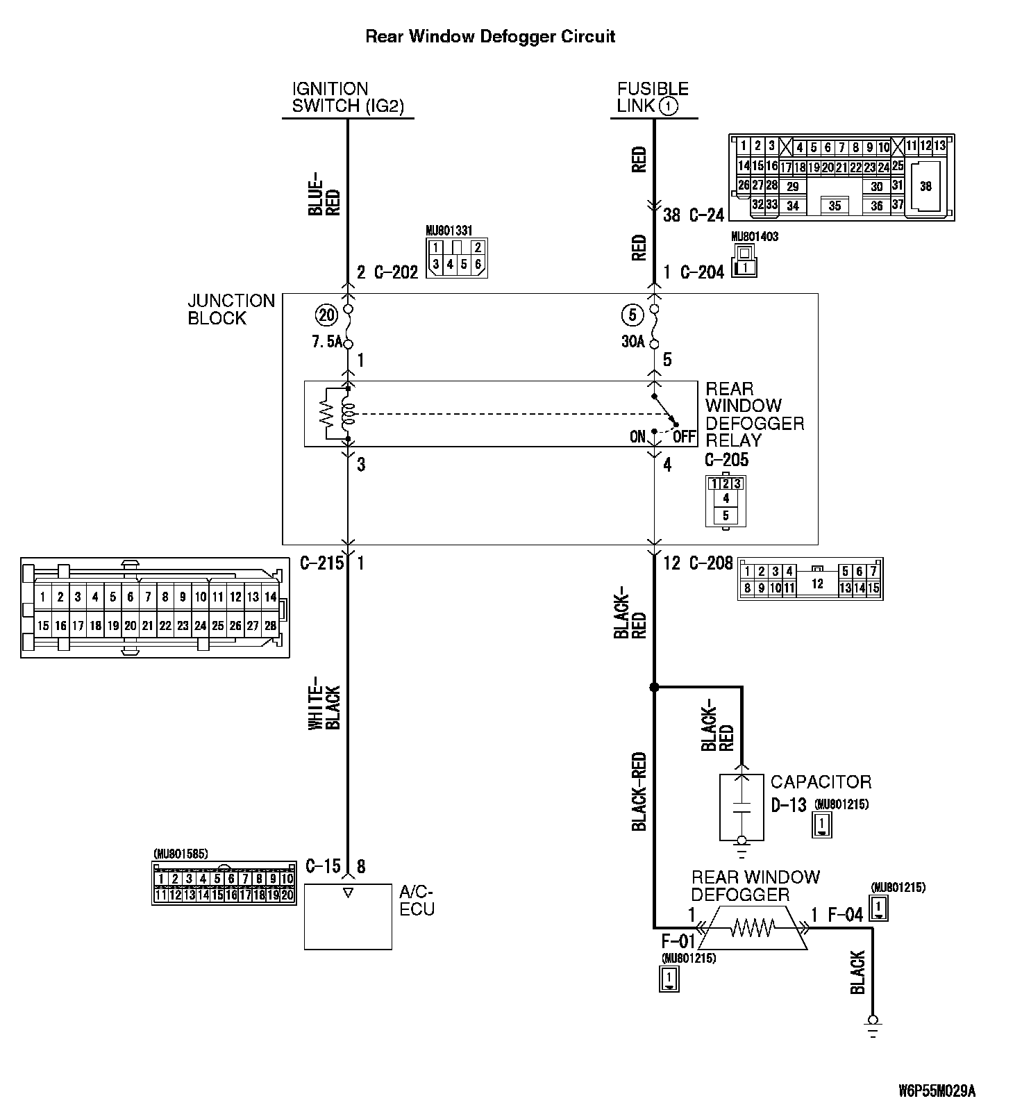 Q: Is A/C-ECU connector C-15 and rear window defogger connector F-01 in good condition?
