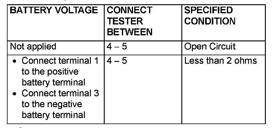 Follow the table to check the rear window defogger relay for continuity.