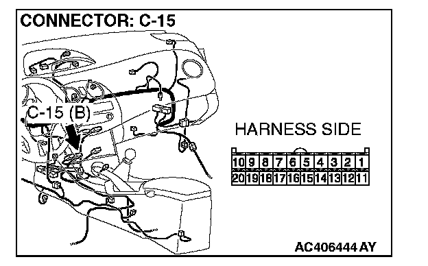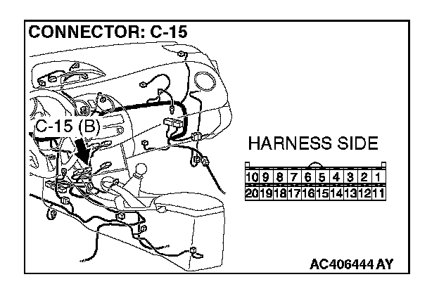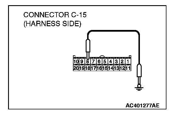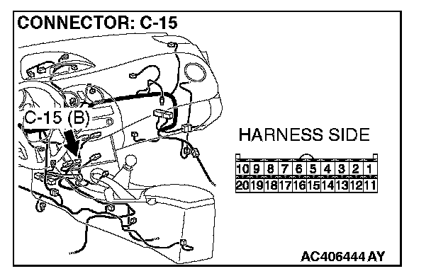 2. Disconnect A/C-ECU connector C-15 and ground harness side terminal No.8.