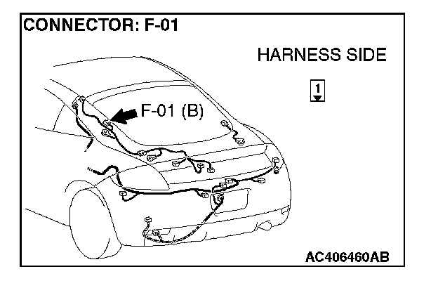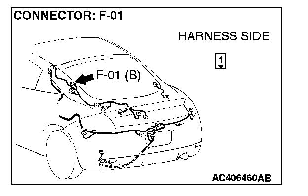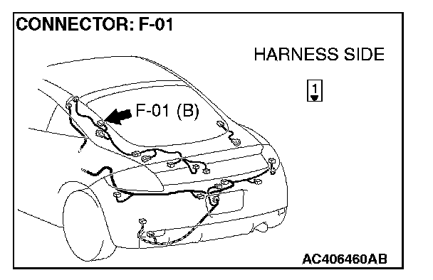 1. Disconnect rear window defogger connector F-01, and measure the voltage at the harness side.