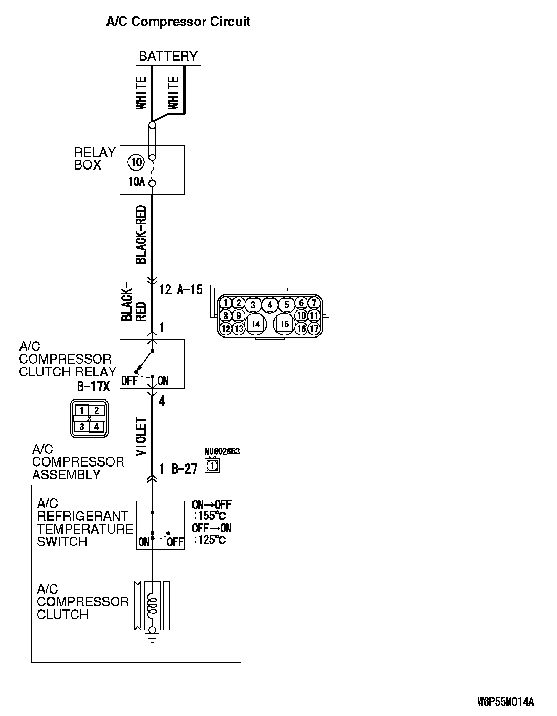 1. Disconnect A/C compressor assembly connector B-27 and A/C compressor clutch relay connector B-17X, and measure the resistance at the wiring harness side.