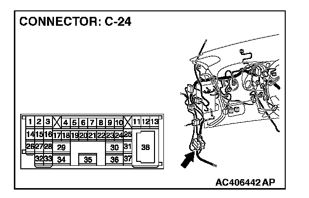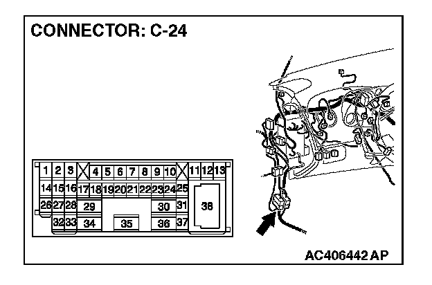 NOTE: Also check intermediate connector C-24 for loose, corroded, or damaged terminals, or terminals pushed back in the connector. If intermediate connector C-24 is damaged, repair or replace the connector as described in Harness Connector Inspection.