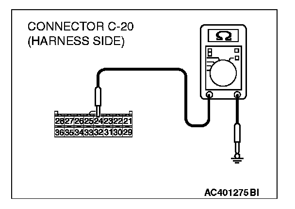 STEP 13. Measure the resistance at A/C-ECU connector C-20.