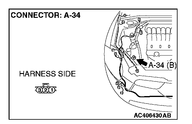 STEP 6. Check A/C pressure sensor connector A-34 for loose, corroded or damaged terminals, or terminals pushed back in the connector.