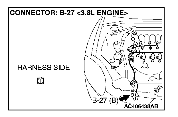 STEP 15. Check A/C compressor assembly connector B-27 for loose, corroded or damaged terminals, or terminals pushed back in the connector.