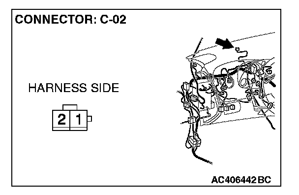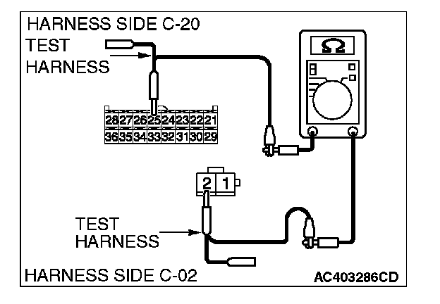 STEP 8. Check the wiring harness between A/C-ECU connector C-20 (terminal 25) and photo sensor connector C-02 (terminal 2).