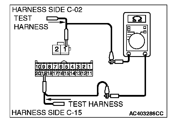 STEP 6. Check the wiring harness between A/C-ECU connector C-15 (terminal 19) and photo sensor connector C-02 (terminal 1).