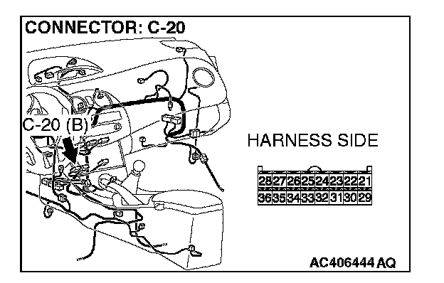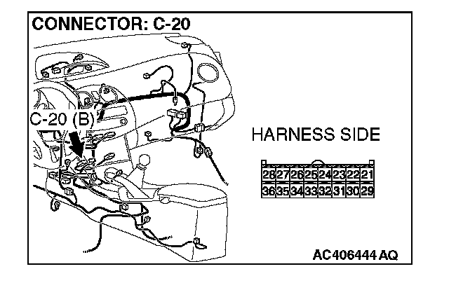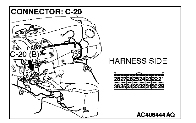STEP 11. Measure the resistance at A/C-ECU connector C-20.