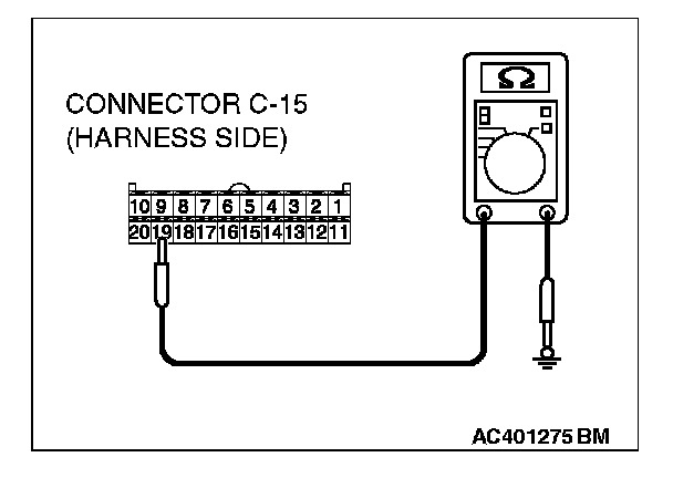 2. Measure the resistance value between terminal 19 and ground.