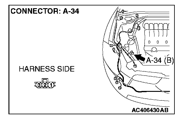STEP 7. Check A/C pressure sensor connector A-34 for loose, corroded or damaged terminals, or terminals pushed back in the connector.