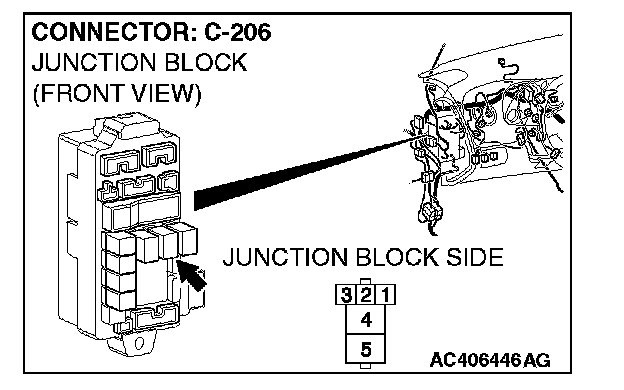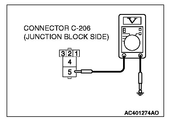 1. Disconnect blower relay connector C-206, and measure the voltage at the junction block side.
