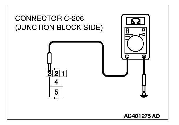 STEP 10. Check the wiring harness between blower relay connector C-206 (terminal 3) and ground.