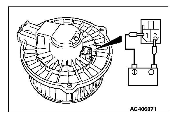 When battery voltage is applied between the terminals, check that the motor operates. Also, check that there is no abnormal noise.